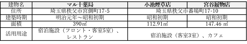 出資者:株式会社西武リアルティソリューションズ、一般社団法人秩父地域おもてなし観光公社株式会社NOTE、三井住友ファイナンス&リース株式会社